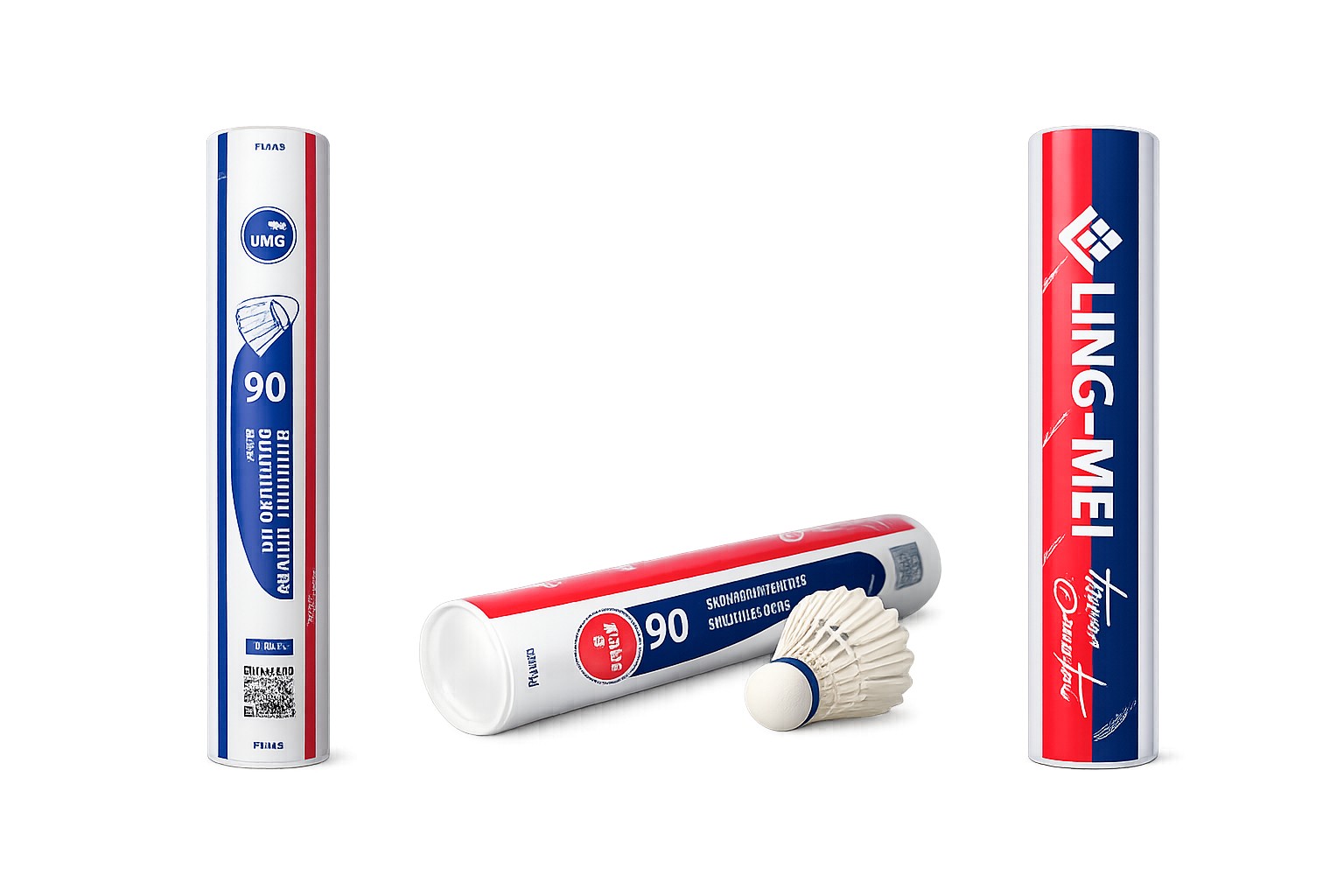 Premium Ling Mei 90 badminton shuttlecocks designed for competitive play. These high-quality shuttlecocks offer excellent flight stability and durability, making them perfect for tournament-level matches and serious practice sessions.